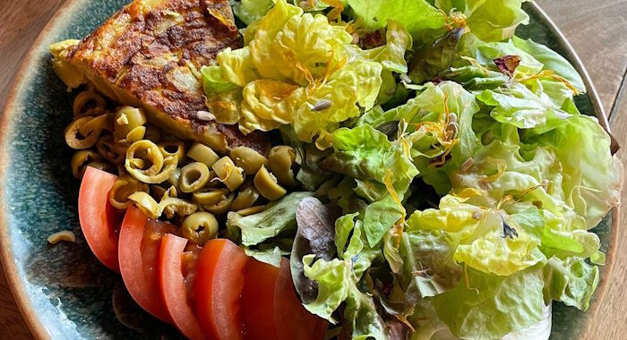 Kou Kou (Kartoffelpuffer mit Zucchini) Blattsalat und Ciabatta Stick