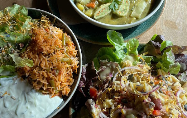 Veganes Tikka Massala mit Basmatireis und Blattsalat